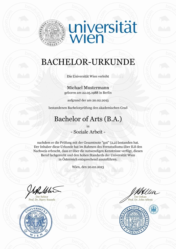 Bachelor Urkunde kaufen | Universität Wien | Aktuelle Vorlage Wien University!