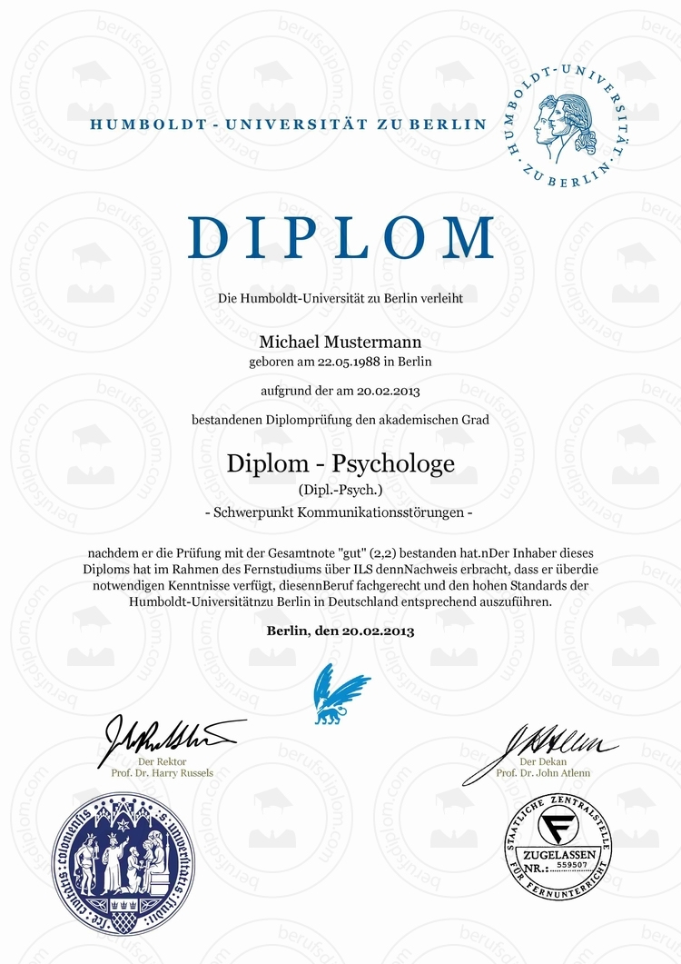 Diplom Urkunde einfach online kaufen Humboldt-Universität zu Berlin ► Diplom mit individuell frei wählbaren Fachrichtung und Schwerpunkt ► Diplom ohne Studium ► Reproduktion nach aktueller Vorlage Humboldt University Berlin