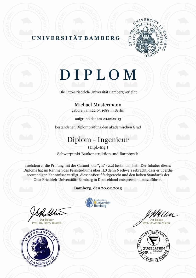 Diplom Urkunde einfach online kaufen Otto-Friedrich-Universität Bamberg ► Diplom mit individuell frei wählbaren Fachrichtung und Schwerpunkt ► Diplom ohne Studium ► Reproduktion nach aktueller Vorlage Otto Friedrich University Bamberg
