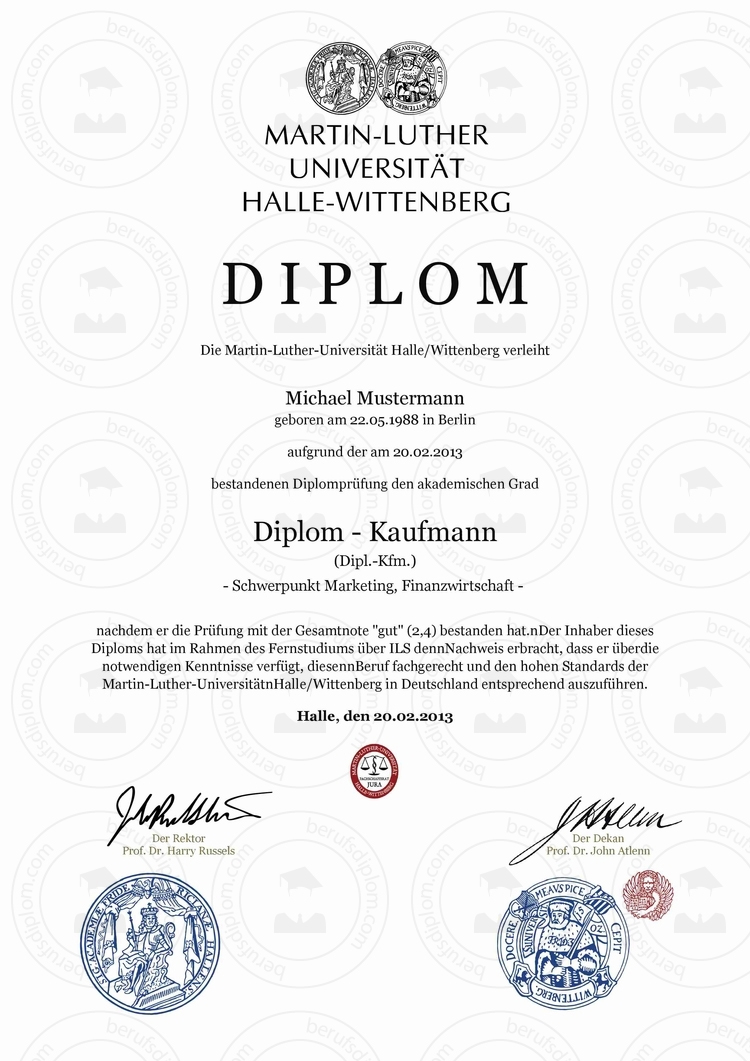 Diplom Urkunde kaufen von Martin-Luther-Universität Halle-Wittenberg ► Diplom mit individuell frei wählbaren Fachrichtung und Schwerpunkt ► Diplom ohne Studium ► Reproduktion nach aktueller Vorlage Martin-Luther-Universität Halle-Wittenberg