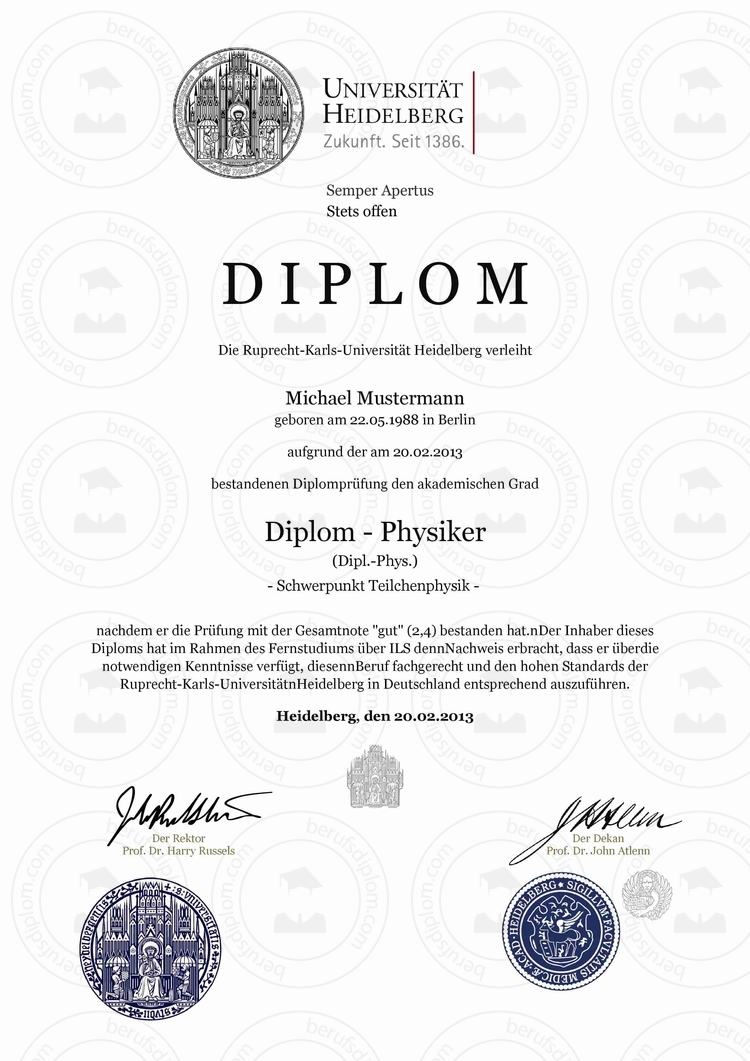 Diplom Urkunde von Ruprecht-Karls-Universität Heidelberg online kaufen ► Diplom mit individuell frei wählbaren Fachrichtung und Schwerpunkt ► Diplom ohne Studium ► Reproduktion nach aktueller Vorlage Ruprecht-Karls-Universität Heidelberg