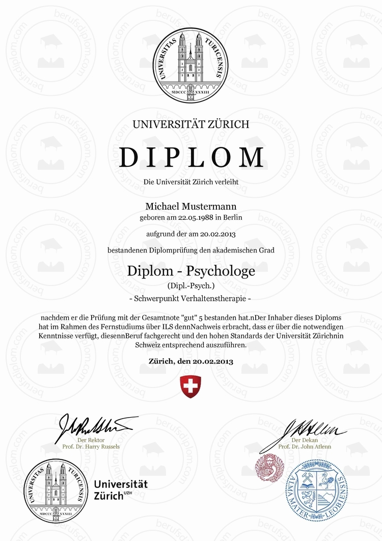 Diplom Urkunde von UZH – Universität Zürich einfach online kaufen ► Diplom mit individuell frei wählbaren Fachrichtung und Schwerpunkt ► Diplom ohne Studium ► Reproduktion nach aktueller Vorlage UZH – University of Zurich