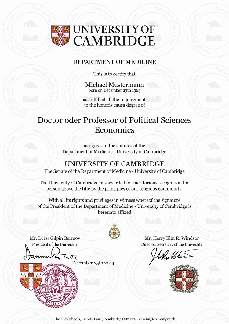 Doktortitel Cambridge online kaufen | Urkunde in nur wenigen Minuten als hochauflösendes PDF zum Download