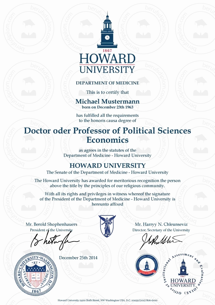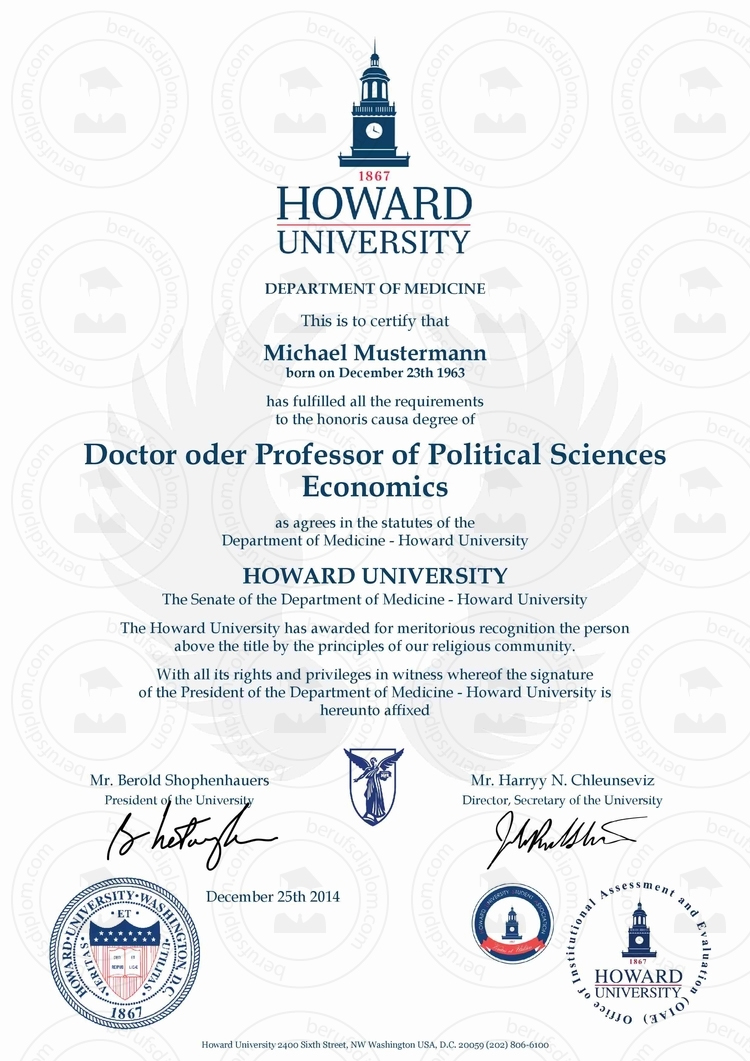 Doktortitel Howard online kaufen | Urkunde in nur wenigen Minuten als hochauflösendes PDF zum Download
