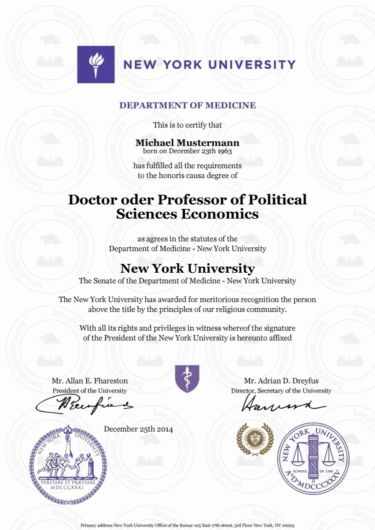 Doktortitel New York online kaufen | Urkunde in nur wenigen Minuten als hochauflösendes PDF zum Download