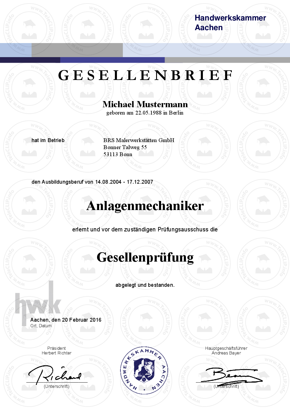 - Das passende HWK Prüfungszeugnis gibt es HIER