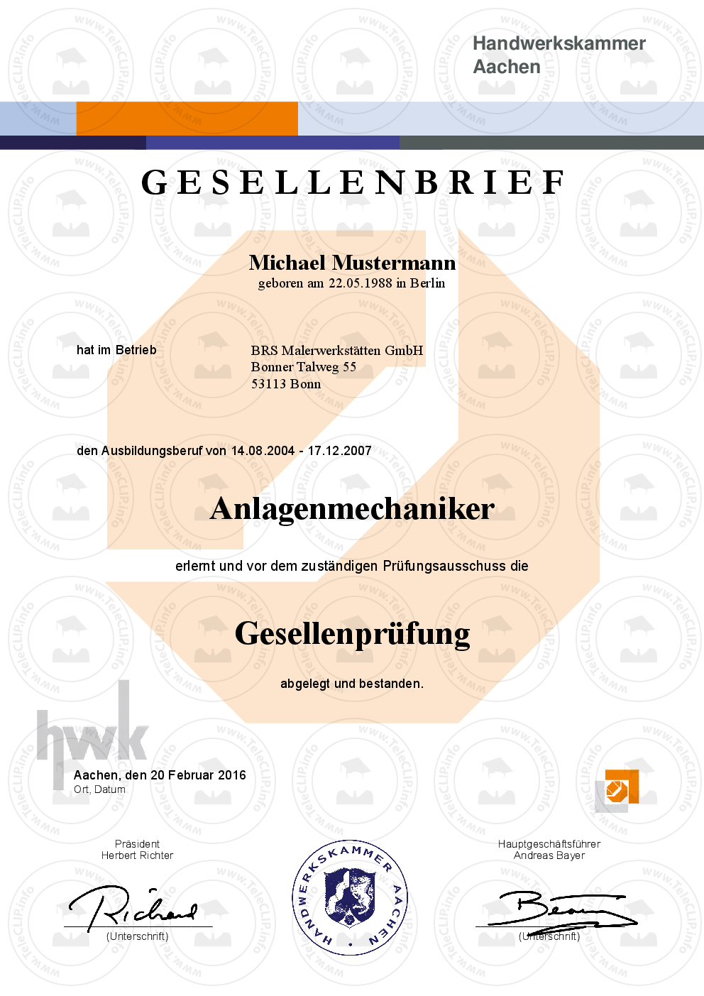 - Das passende HWK Prüfungszeugnis gibt es HIER