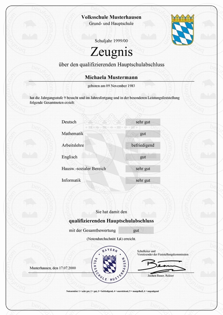 - Reproduzieren Sie ein Quali Zeugnis nach originaler Hauptschulabschluss Vorlage in perfekter Qualität.