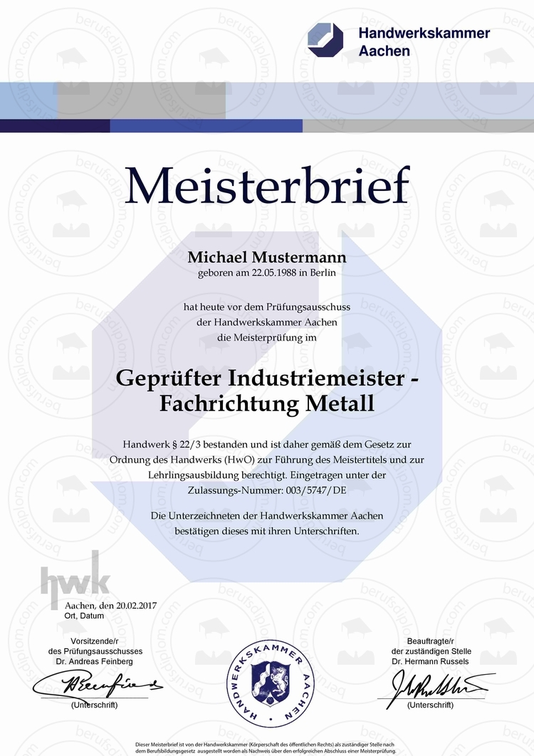 HWK Meisterbriefe online kaufen | In nur zwei Minuten als hochauflösendes PDF zum Download und Ausdrucken