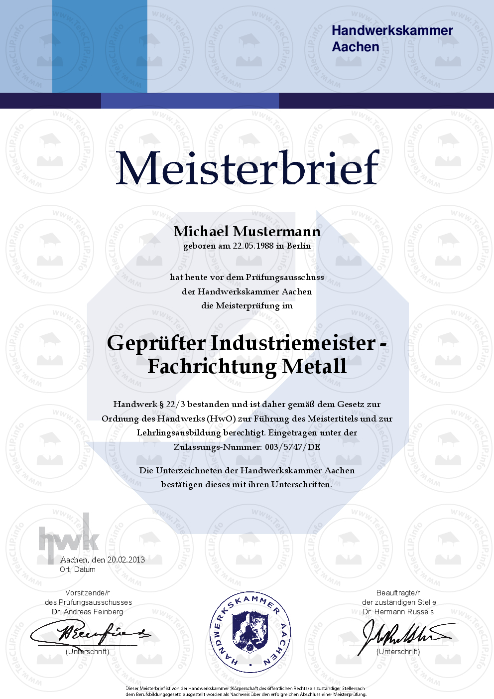 Das passende HWK Meisterprüfungszeugnis gibt es HIER: