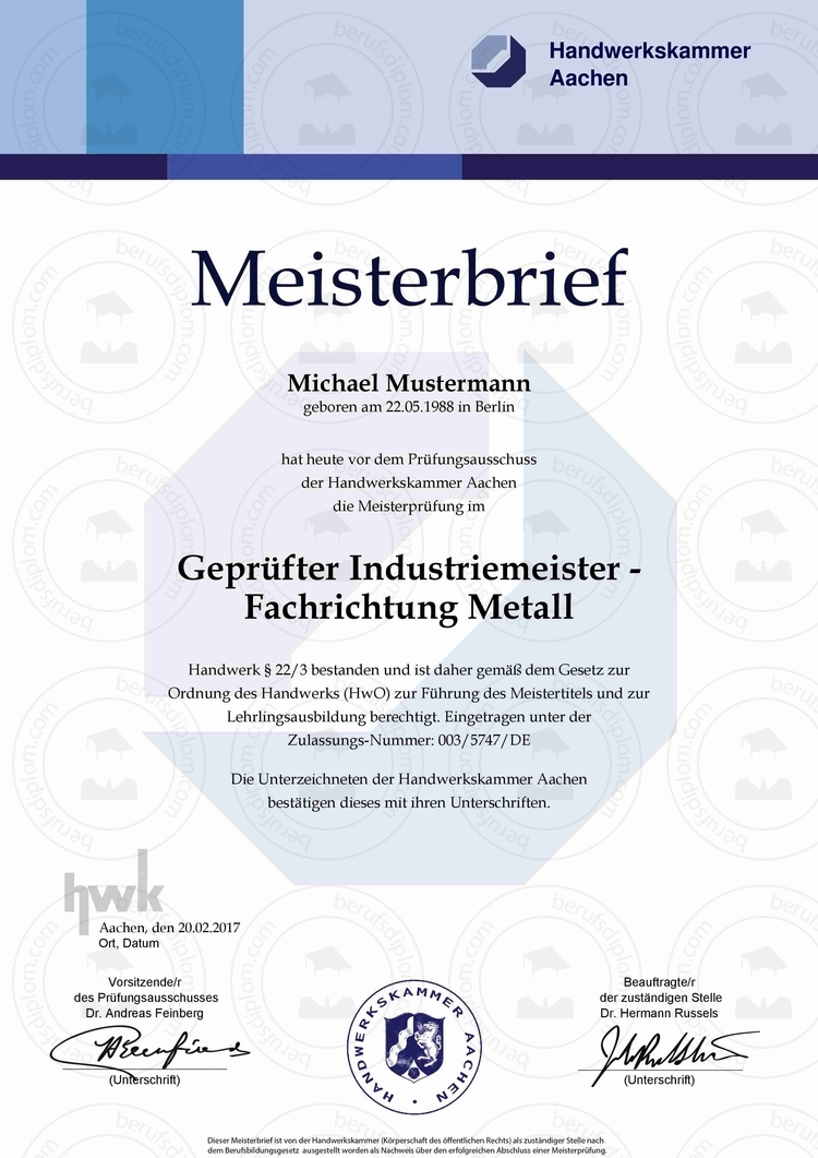 Meisterbrief aus Deutschland