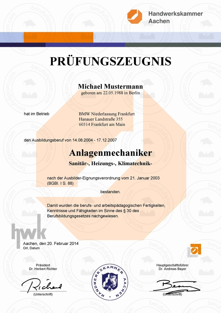 HWK Prüfungszeugnisse online kaufen | In nur zwei Minuten als hochauflösendes PDF zum Download und Ausdrucken
