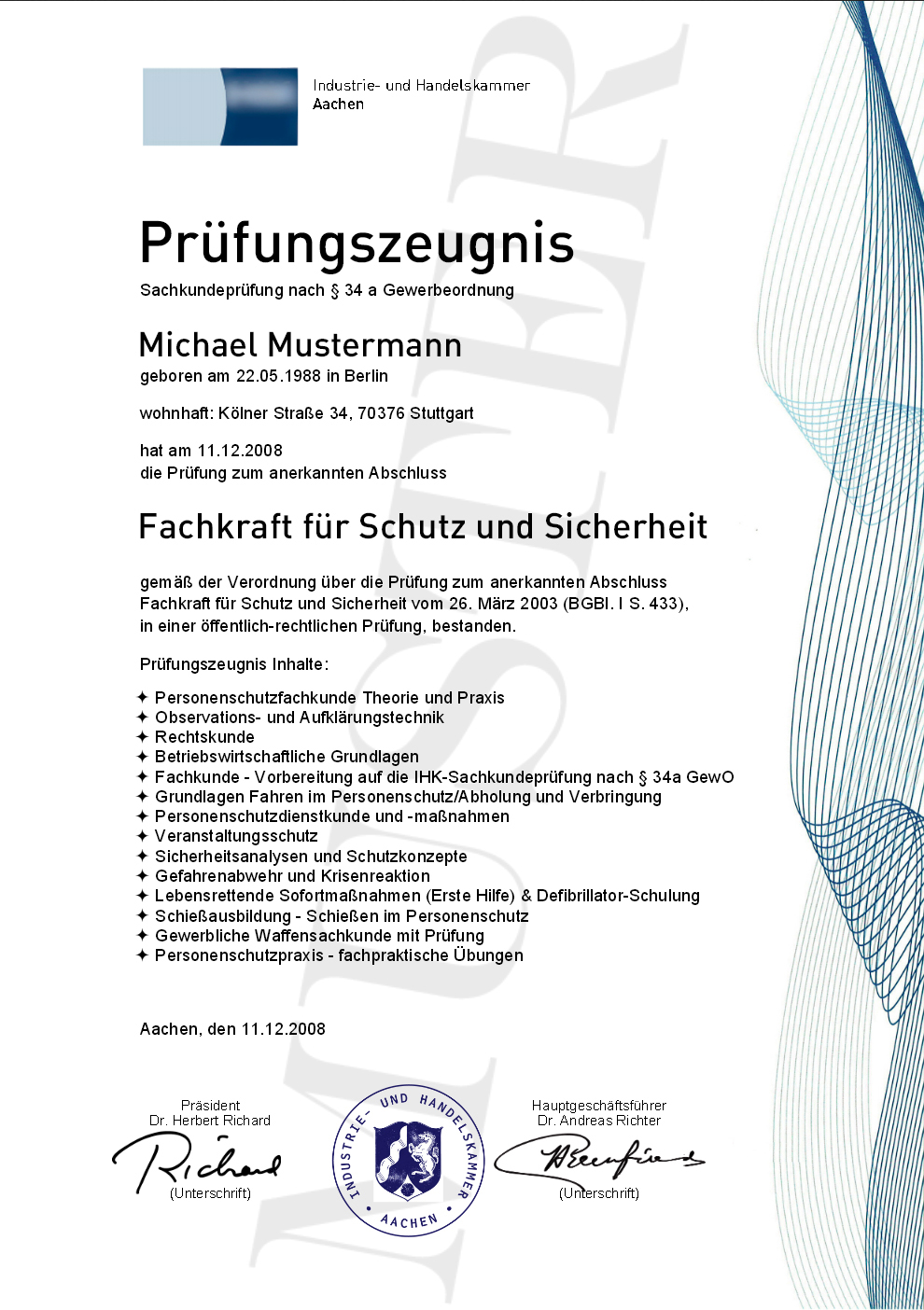IHK Sachkundeprüfung nach § 34 a der Gewerbeordnung GewO kaufen, | Berufszertifikate & Diplome #