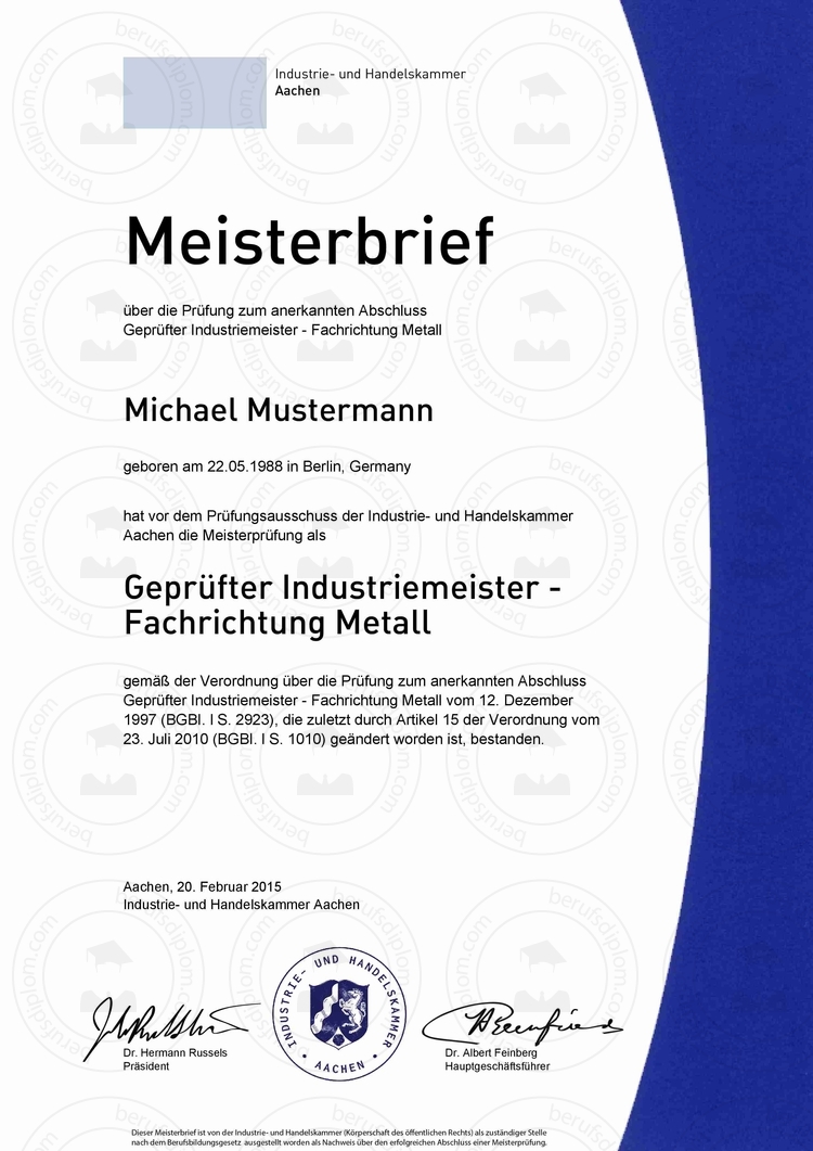 IHK Meisterbrief online kaufen | Master in nur wenigen Minuten als hochauflösendes PDF zum Download