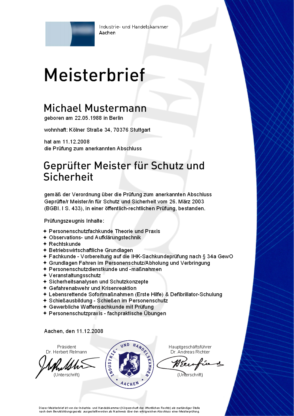 IHK GEPRÜFTER MEISTER FÜR SCHUTZ UND SICHERHEIT ERSTELLEN IHK GEPRÜFTER MEISTER FÜR SCHUTZ UND SICHERHEIT KAUFEN
