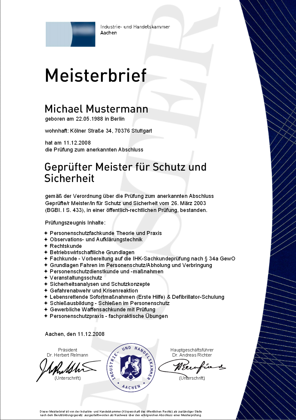 IHK Geprüfter Meister für Schutz und Sicherheit kaufen, Sachkundeprüfung | Berufszertifikate & Diplome #