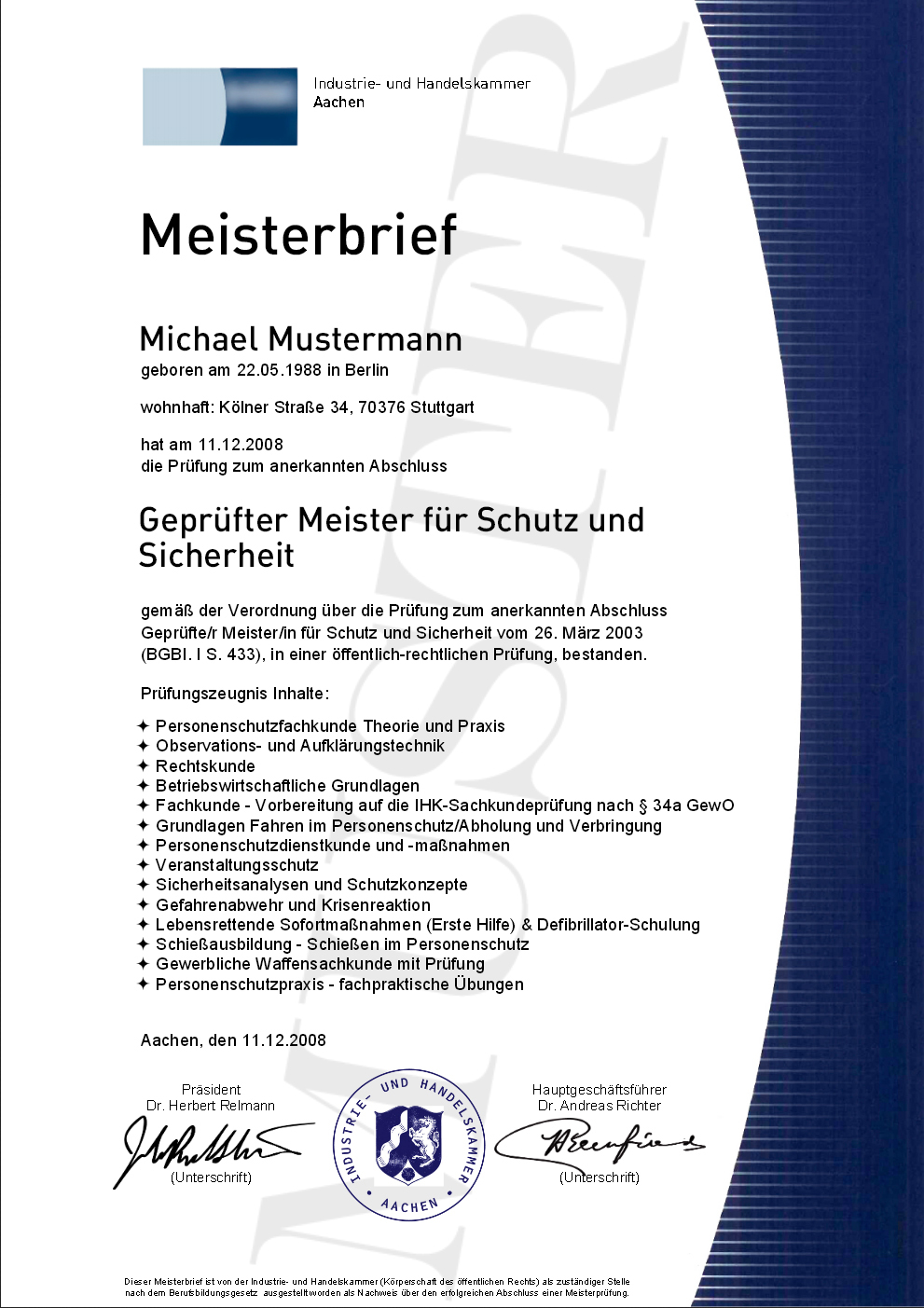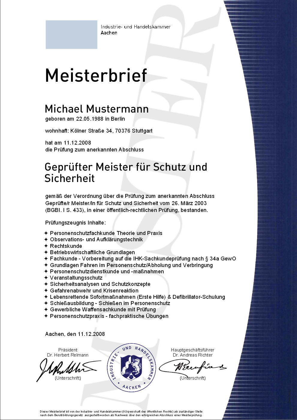 IHK Geprüfter Meister für Schutz und Sicherheit kaufen, Sachkundeprüfung | Berufszertifikate & Diplome #