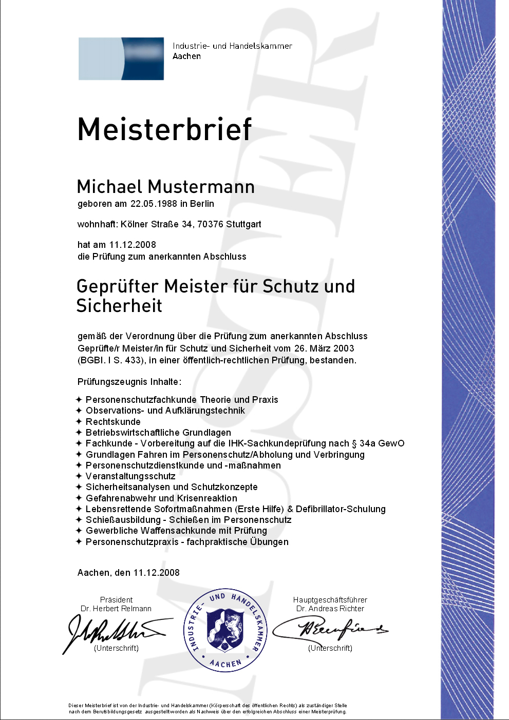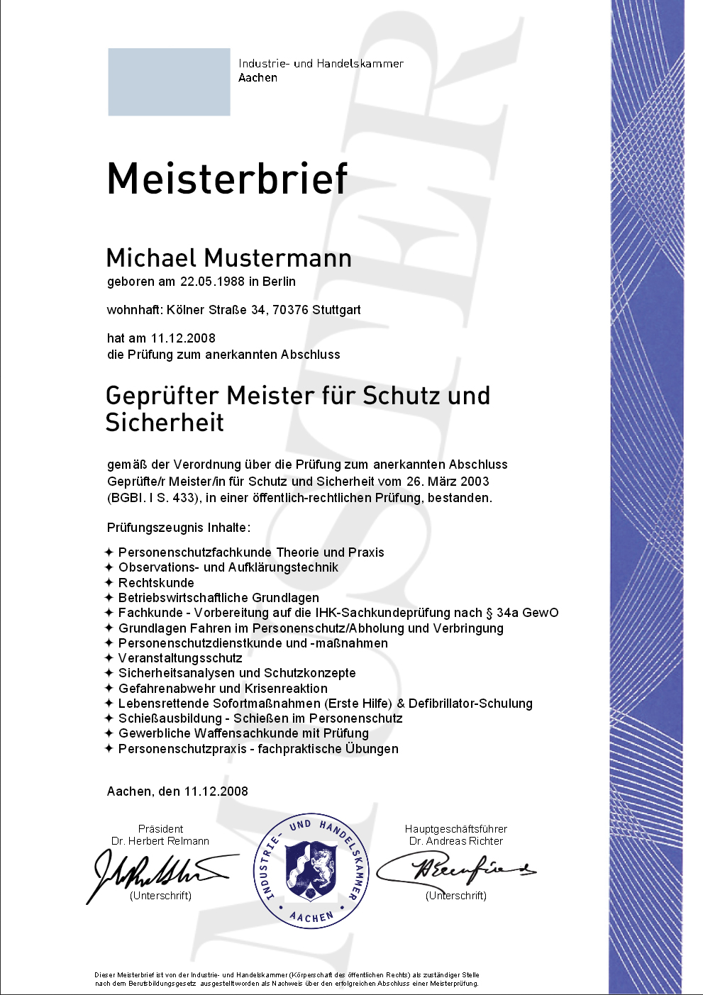 IHK GEPRÜFTER MEISTER FÜR SCHUTZ UND SICHERHEIT ERSTELLEN IHK GEPRÜFTER MEISTER FÜR SCHUTZ UND SICHERHEIT KAUFEN