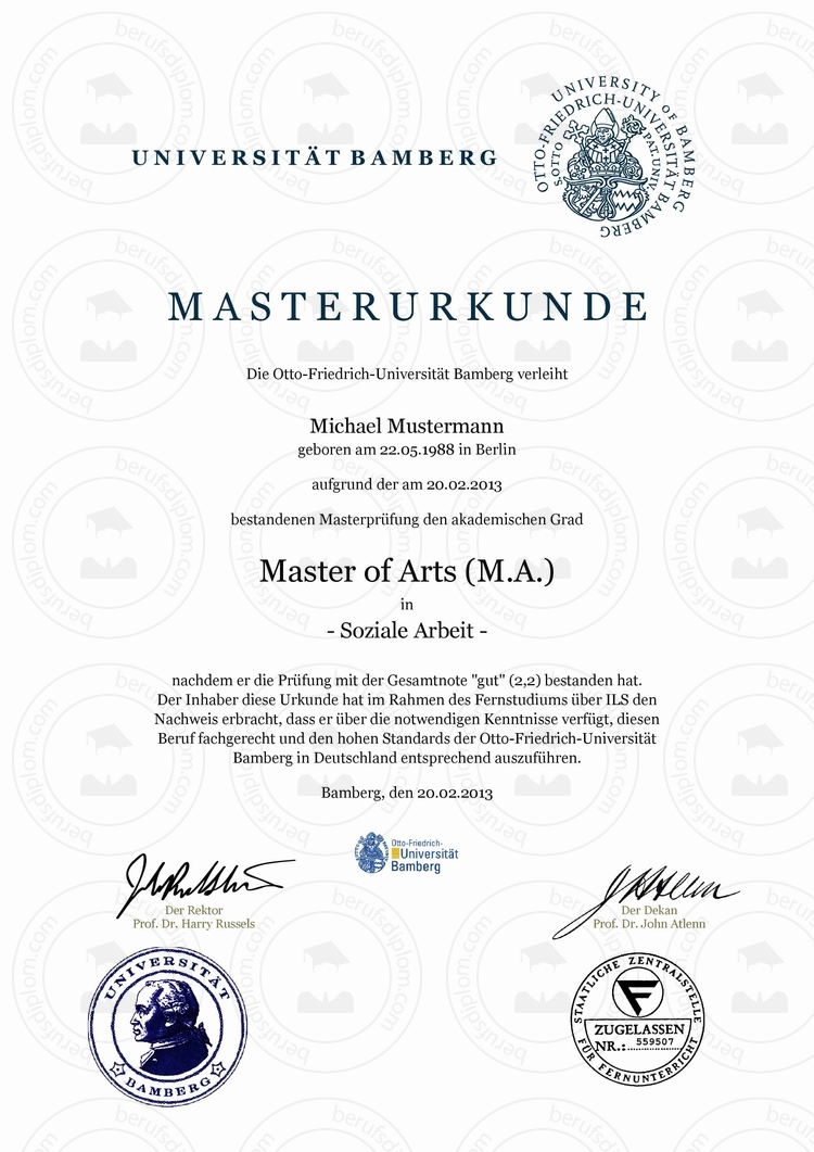 Master-, Bachelor-, Diplom-, Doktortitel kaufen Master’s degrees – Otto-Friedrich-Universität Bamberg