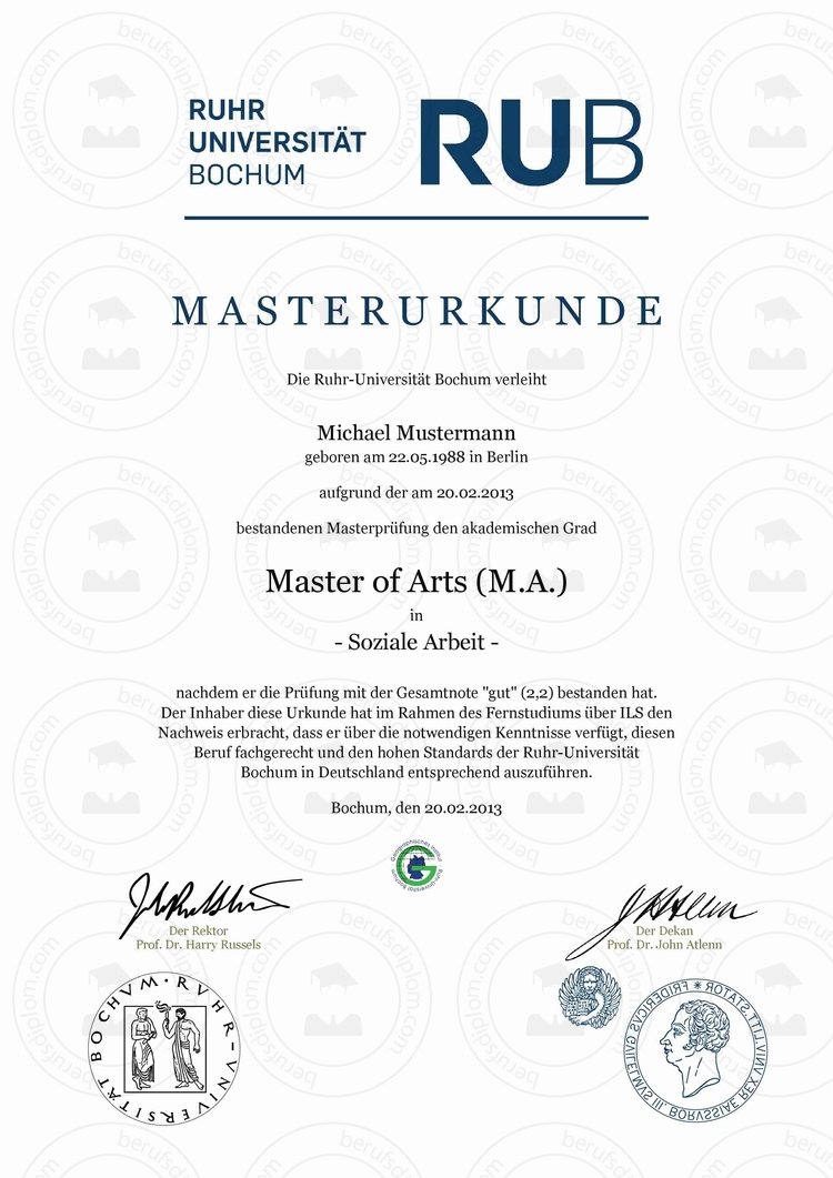 Ruhr-Universität Bochum Master Urkunde einfach online kaufen ► Frei zu gestaltende Masterurkunde für den Masterabschluss ► Master ohne Studium ► Ruhr University Bochum