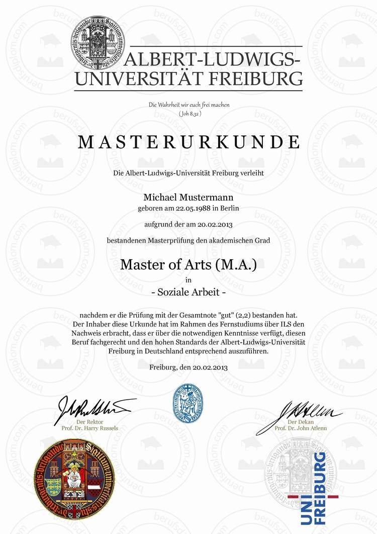 Master-, Bachelor-, Diplom-, Doktortitel kaufen Master’s degrees – Albert-Ludwigs-Universität Freiburg