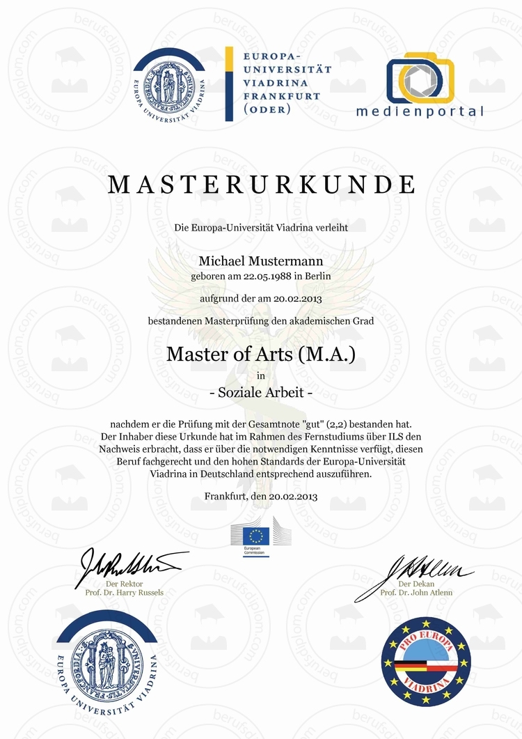 Europa-Universität Viadrina Master Urkunde einfach online kaufen ► Frei zu gestaltende Masterurkunde für den Masterabschluss ► Master ohne Studium ► European University Viadrina Frankfurt