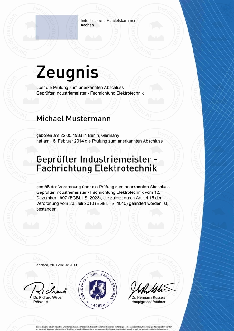 • Aktuelles IHK Zeugnis für den Fortbildungsberuf in Deutschland (Reproduktion nach aktueller Vorlage)